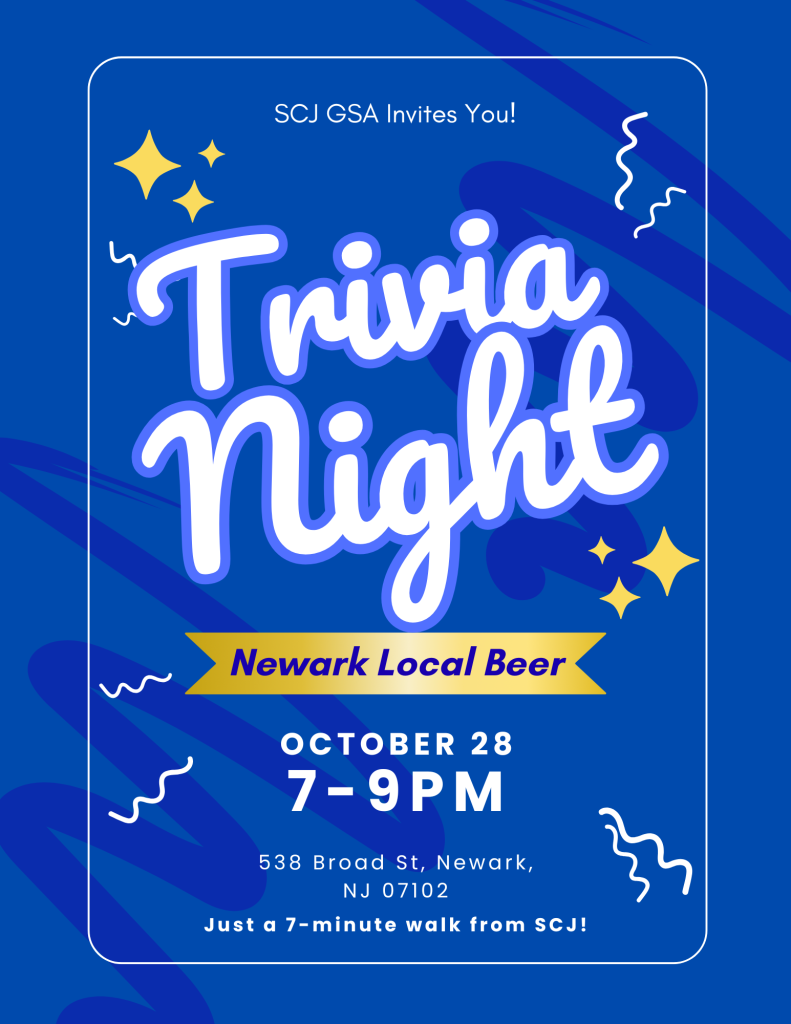 This semester is insane. Need a break? All grad students, faculty, and staff are invited to Trivia Night at Newark Local Beer (538 Broad St, Newark, NJ 07102) from 7-9 pm on Tuesday, October 28th!